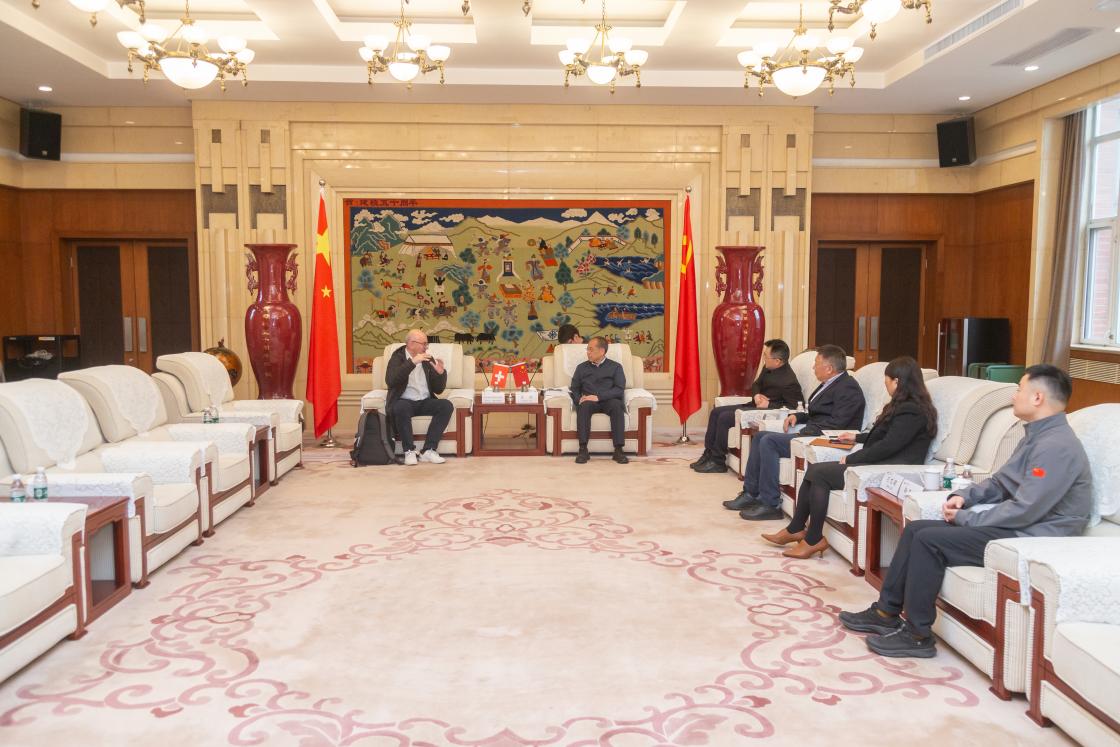张剑对霍伦施泰因表示热烈欢迎,并简要介绍了学校办学历史与发展成果。他表示,瑞士体操运动普及程度高,形成了“以群众体育为根基、带动竞技水平稳步提升”的良好生态,这一发展模式值得学习借鉴。近年来,瑞士体操竞技实力稳步提升,在国际大赛中屡创佳绩,双方在教练员与运动员互训、科研与文化交流等方面合作空间广阔。